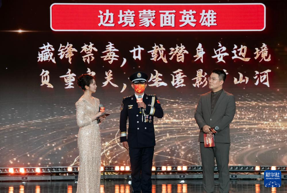 1月28日,由新華社主辦的“中國網(wǎng)事·感動2025”公益盛典暨年度頒獎典禮在北京舉行,活動揭曉“中國網(wǎng)事·感動2025”十大年度網(wǎng)絡(luò)人物。這是“邊境蒙面英雄”安曉華(中)出席頒獎典禮。新華社記者 李安 攝