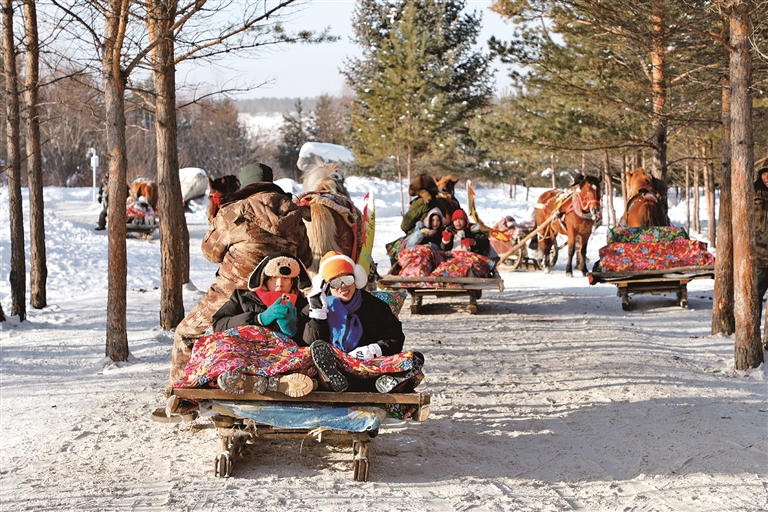 游客在漠河市北極村體驗(yàn)馬拉爬犁。光明日?qǐng)?bào)記者 劉宇航攝/光明圖片