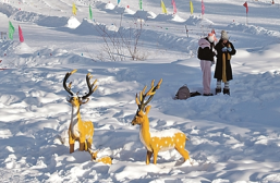 游客在漠河市北極村的雪地里玩耍。光明日?qǐng)?bào)記者 劉宇航攝/光明圖片