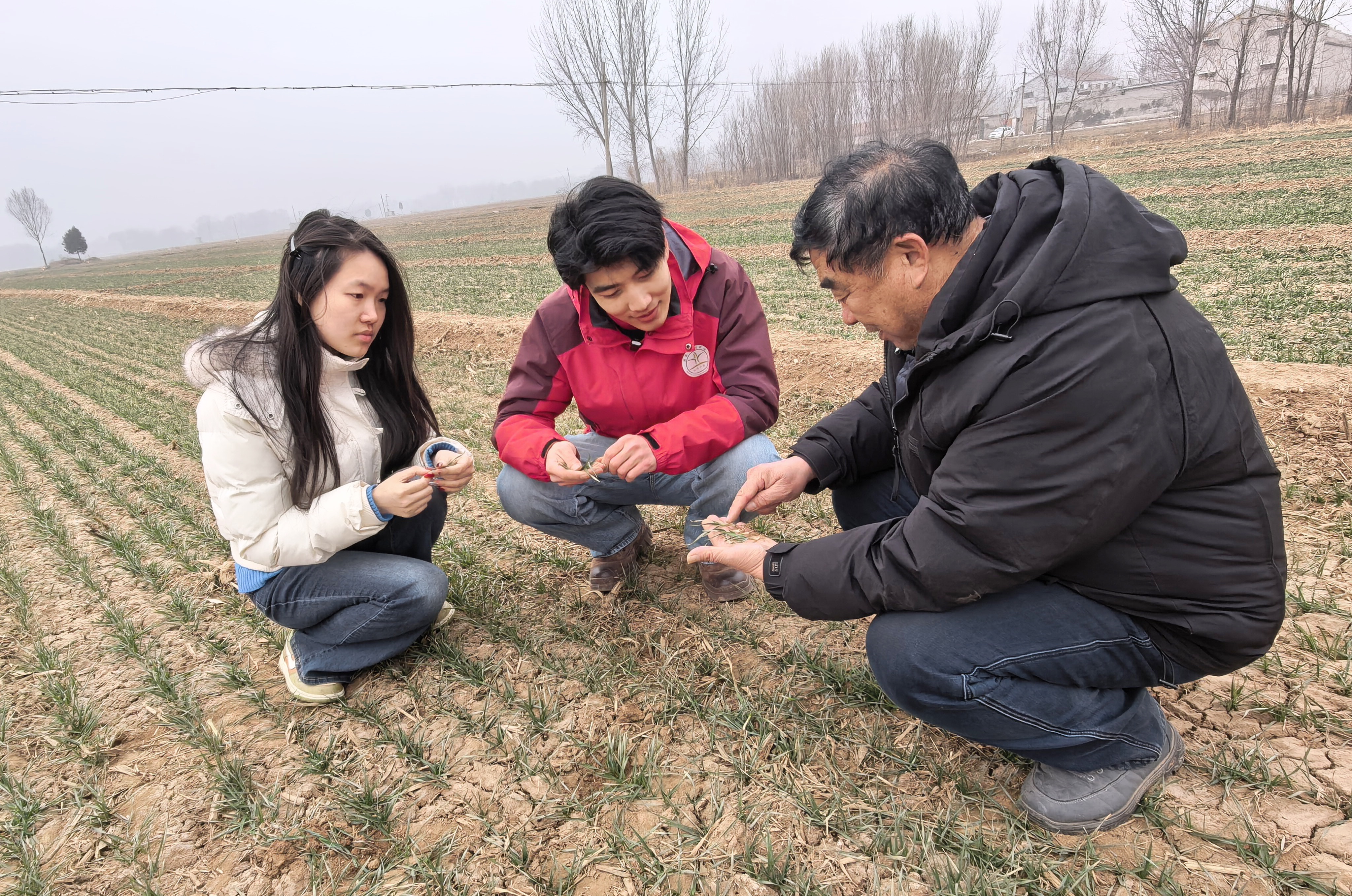 “秋播時雨水較大,小麥播種晚了半個月,麥苗比往年弱小?!碧ぱ┻M田,記者看到種糧大戶呂桂生正和中國農(nóng)業(yè)大學曲周實驗站研究生李康寧、龔若魚蹲在田埂上,察看麥苗長勢。