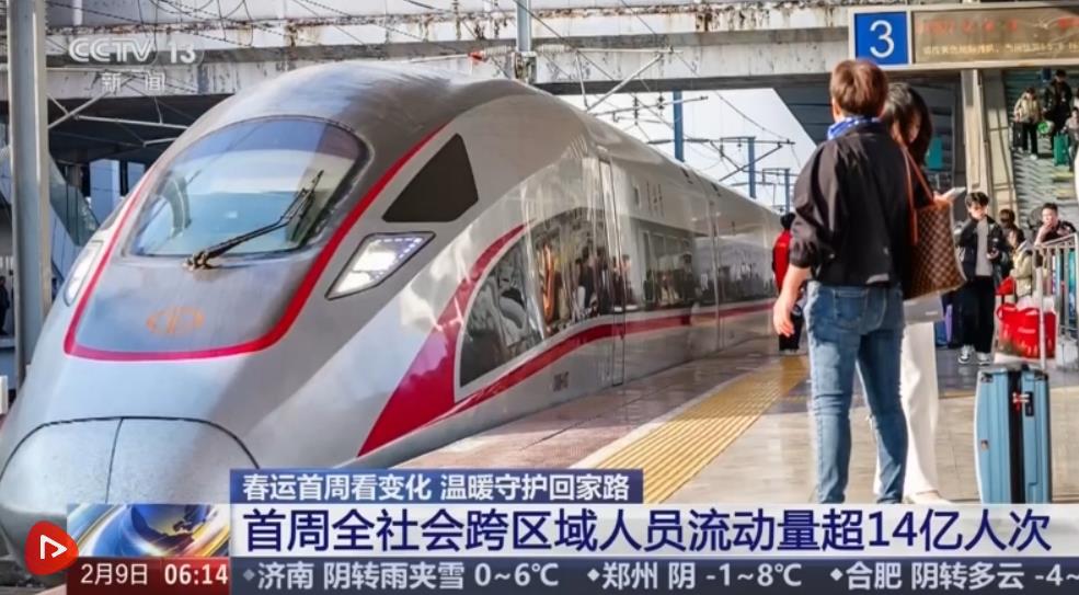 2026年春運2月2日拉開帷幕,到2月9日是第八天。據此前綜合研判的數(shù)據,在今年春運40天的時間里,全社會跨區(qū)域人員流動量將會達到95億人次,預計創(chuàng)歷史新高。數(shù)據顯示,春運首周,預計全社會跨區(qū)域人員流動量累計超14億人次,日均超2億人次,比去年同期增長2%。交通運輸部預計,2月14日前后將達到春節(jié)前客流峰值。