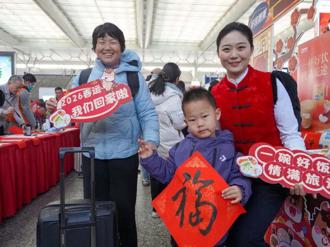春運(yùn)的站臺人來人往,列車員不僅穩(wěn)穩(wěn)接住了旅客的行囊,更溫暖了歸鄉(xiāng)的旅途。這小小的動作,是鐵路人守護(hù)團(tuán)圓的日常,也是藏在春運(yùn)里的動人溫情。