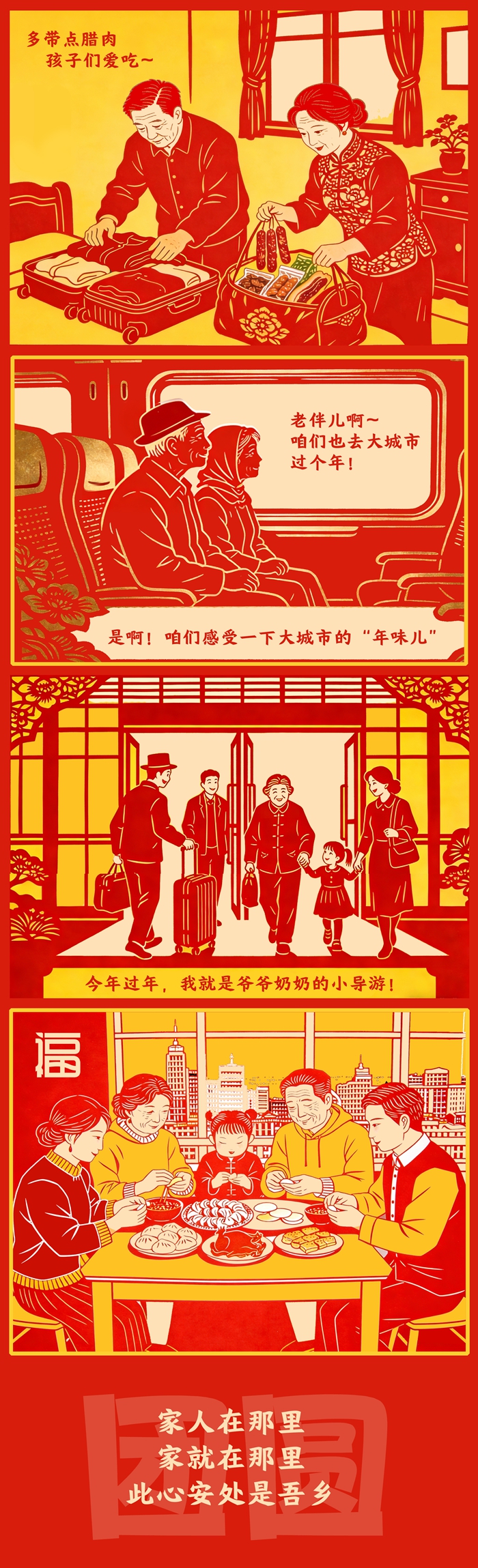 反向春運(yùn),遠(yuǎn)不止出行方式之變,它見(jiàn)證著中國(guó)人對(duì)“家”的理解,從故土坐標(biāo)轉(zhuǎn)向親情紐帶。變的,是團(tuán)圓路徑的智慧選擇;不變的,是對(duì)親情的永恒珍視。一個(gè)充滿活力的現(xiàn)代社會(huì),正以其包容與溫度,為每一種真摯奔赴鋪就道路。流動(dòng)中國(guó)的底色是團(tuán)圓,動(dòng)力是親情,終點(diǎn)永遠(yuǎn)是家之所在。(文字/泰軒萍 漫畫(huà)/泰軒萍 編輯/喬佳新)
