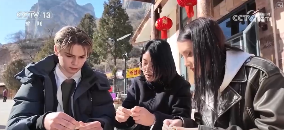 此外,外國游客還興致勃勃跟著村民一起搟餃子皮、學(xué)包餃子,親手體驗(yàn)這一充滿團(tuán)圓寓意的傳統(tǒng)習(xí)俗。