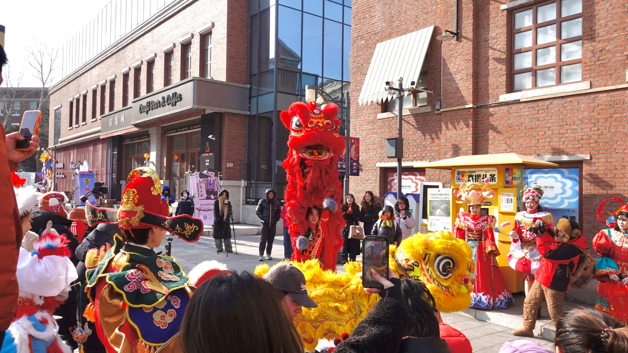 鏗鏘鑼鼓響,民俗鬧新春。隨著一陣熱鬧的鑼鼓聲,新春巡游正式開啟,將現(xiàn)場(chǎng)歡樂氛圍推向高潮?!案5搲巯藏?cái)”五路神仙身著華服亮相,手持福袋向游客們派福送喜,兩只靈動(dòng)的醒獅踏著鼓點(diǎn),時(shí)而跳躍騰挪,時(shí)而俯身作揖,與現(xiàn)場(chǎng)市民親密互動(dòng),引得人群陣陣歡呼喝彩。大家紛紛拿出手機(jī)、相機(jī),記錄下這精彩的民俗瞬間,鑼鼓聲、歡笑聲、拍照的快門聲交織在一起,成為春京西街巷里最動(dòng)聽的新春樂章。