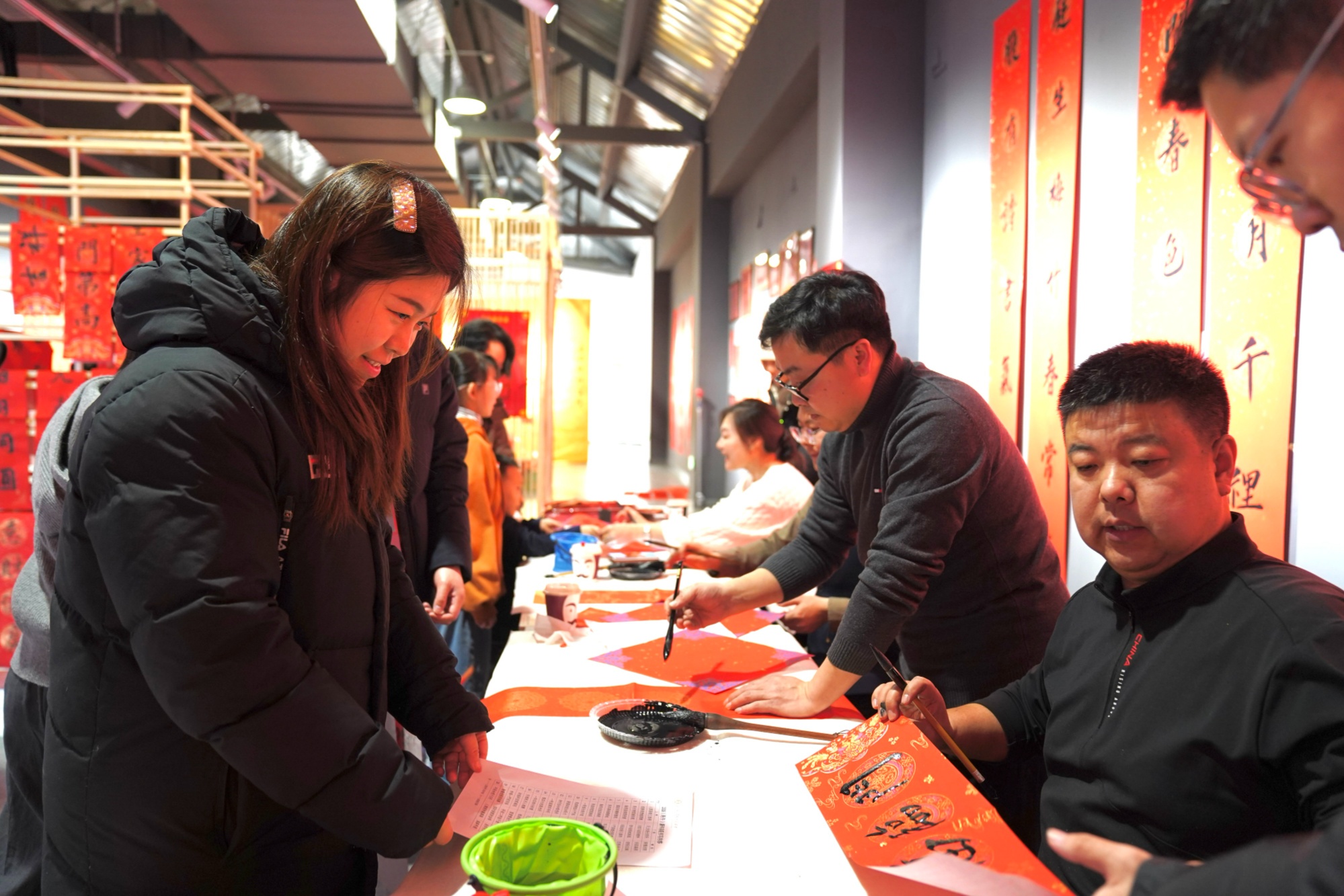 空·美術(shù)館里墨香四溢,長(zhǎng)春市青年書法家協(xié)會(huì)副主席郭洪日等四位書法家現(xiàn)場(chǎng)揮毫,“馬到成功添錦繡”“喜盈大冬啟新程”等春聯(lián)躍然紙上,將新春祝福與大冬會(huì)期盼融入筆墨,市民們手捧墨香春聯(lián),爭(zhēng)相與書法家、喜慶春聯(lián)合影,一張張笑臉在鏡頭中綻放。累計(jì)百余份春聯(lián)、福字免費(fèi)發(fā)放,每一份都成了市民打卡收藏的“新春文化禮”。