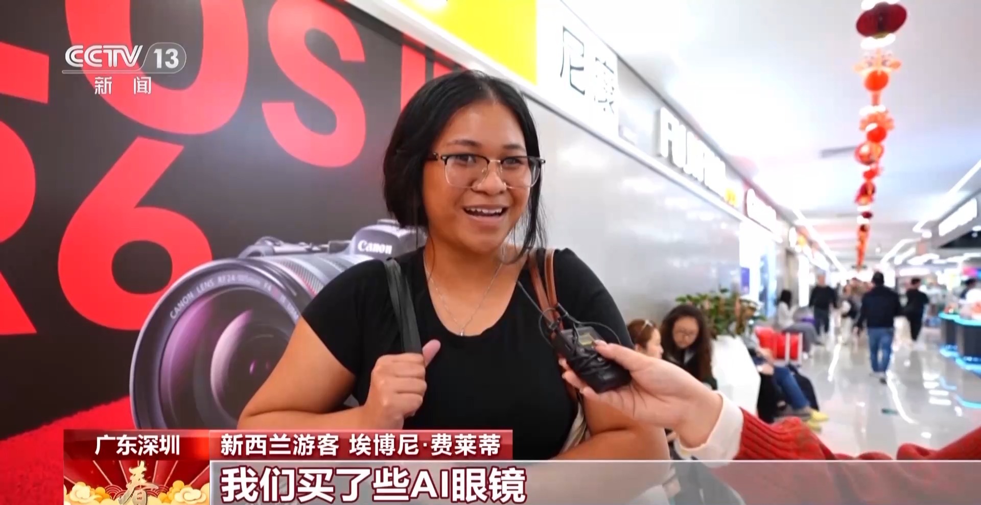 新西蘭游客 埃博尼·費(fèi)萊蒂:我們買了些AI眼鏡,它讓我們在這里溝通交流變得更方便,這對我們是很大的幫助。