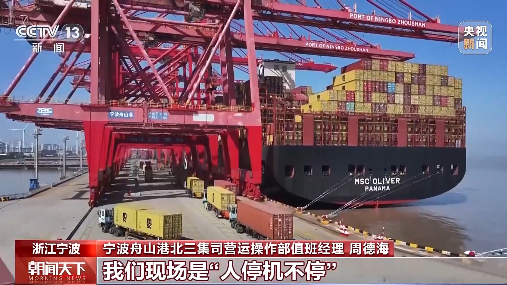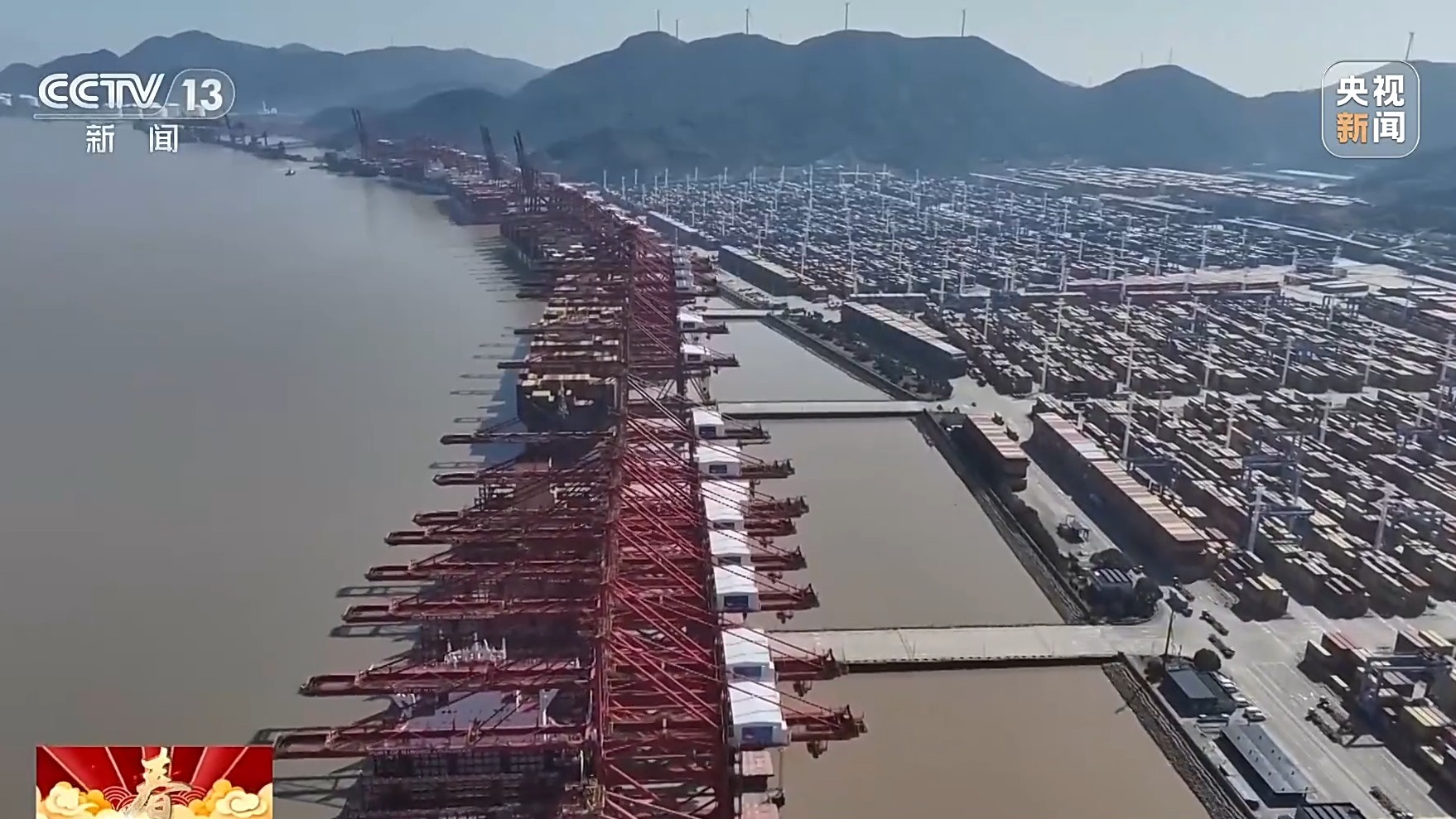 陸路班列接續(xù)開行,海上和空中的貿(mào)易鏈接同樣密切。寧波舟山港在春節(jié)期間裝卸作業(yè)24小時不間斷。大年初一到初六,寧波舟山港完成集裝箱吞吐量超78萬標(biāo)準(zhǔn)箱,同比增長超17%。