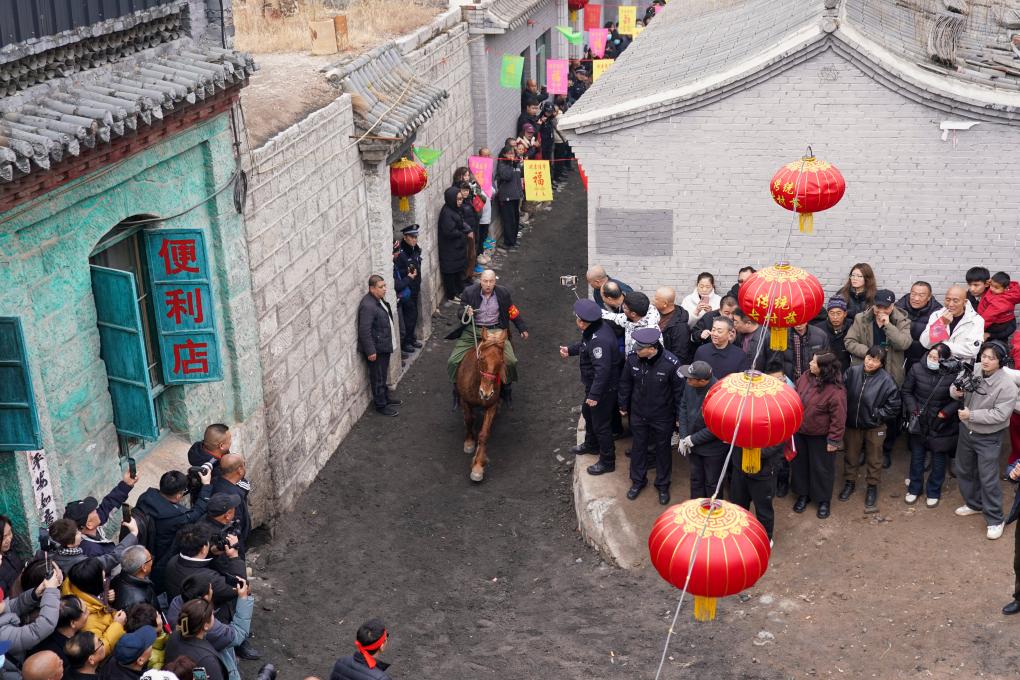3月4日,農(nóng)歷正月十六,這個(gè)距離娘子關(guān)僅6公里的小山村,迎來(lái)了一年中最熱鬧的時(shí)刻,村中那條長(zhǎng)約400米、寬不足4米的青石古巷上,里三層外三層擠滿了人。沿路民房的臺(tái)階上、門(mén)檻上,甚至屋頂上,都早已站上了不請(qǐng)自來(lái)的看客,主人家卻也毫不在意:“今天這個(gè)大日子,大家一起熱鬧熱鬧!”