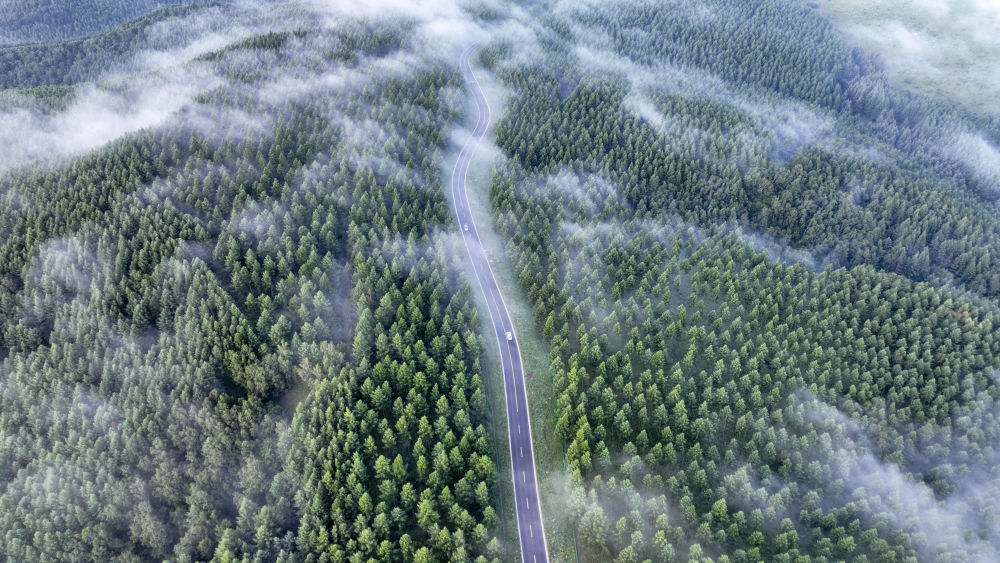2024年7月26日拍攝的塞罕壩國家級自然保護區(qū)景色(無人機照片)。夏日清晨,位于河北省承德市的塞罕壩國家級自然保護區(qū)滿目青翠,浩瀚林海壯美如畫。新華社發(fā)(王立群 攝)