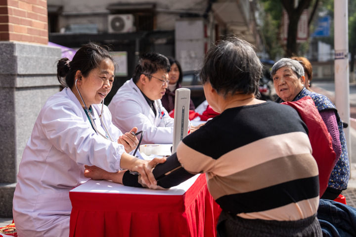 2026年3月5日,在湖南長(zhǎng)沙市望城區(qū)高塘嶺街道雷鋒路社區(qū)雷鋒驛站,志愿者(左一)為市民測(cè)量血壓。新華社記者 陳思汗 攝