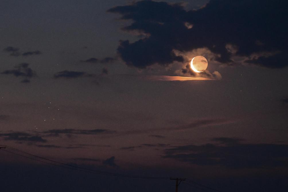 這是2025年8月16日在黑龍江省同江市拍攝的下弦月斜穿昴星團(tuán)。新華社發(fā)(劉萬平 攝)
