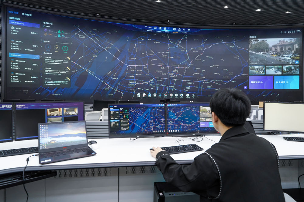 工作人員在江蘇省南京市城市運行管理中心指揮大廳操作“一網(wǎng)統(tǒng)管”指揮調(diào)度系統(tǒng)(2024年4月11日攝)。近年來,南京市積極構(gòu)建數(shù)字化、智能化、智慧化城市治理體系,將城市運行“一網(wǎng)統(tǒng)管”作為推進城市數(shù)字化轉(zhuǎn)型、城市治理體系和治理能力現(xiàn)代化的重要工作。