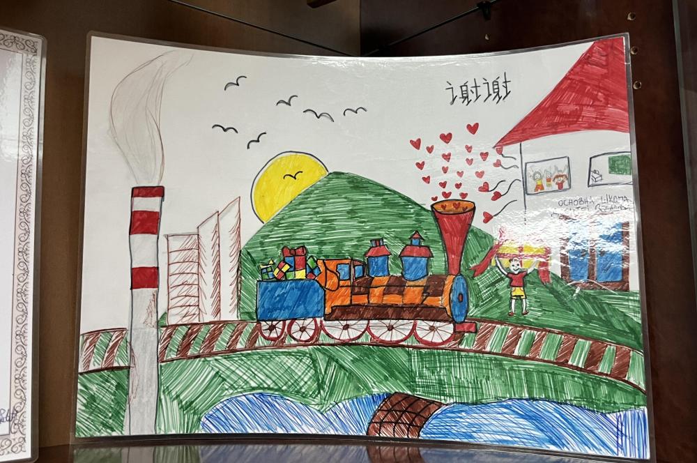 在斯梅戴雷沃鋼廠辦公樓入口處,擺放著一摞廠辦期刊。每一期封底都是一幅鋼廠子弟或當(dāng)?shù)匦W(xué)生的畫(huà)作。在孩子們眼中,鋼廠色彩斑斕:郁郁蔥蔥的山腳下,色彩鮮亮的火車(chē)頭在廠區(qū)內(nèi)穿梭,噴出“小愛(ài)心”;孩子們手持氣球,站在鋼廠援建的學(xué)校前,腳下開(kāi)滿鮮花;塞中兩國(guó)員工肩并肩站在一起,兩國(guó)國(guó)旗和兩種文字的“謝謝”排列在一起。