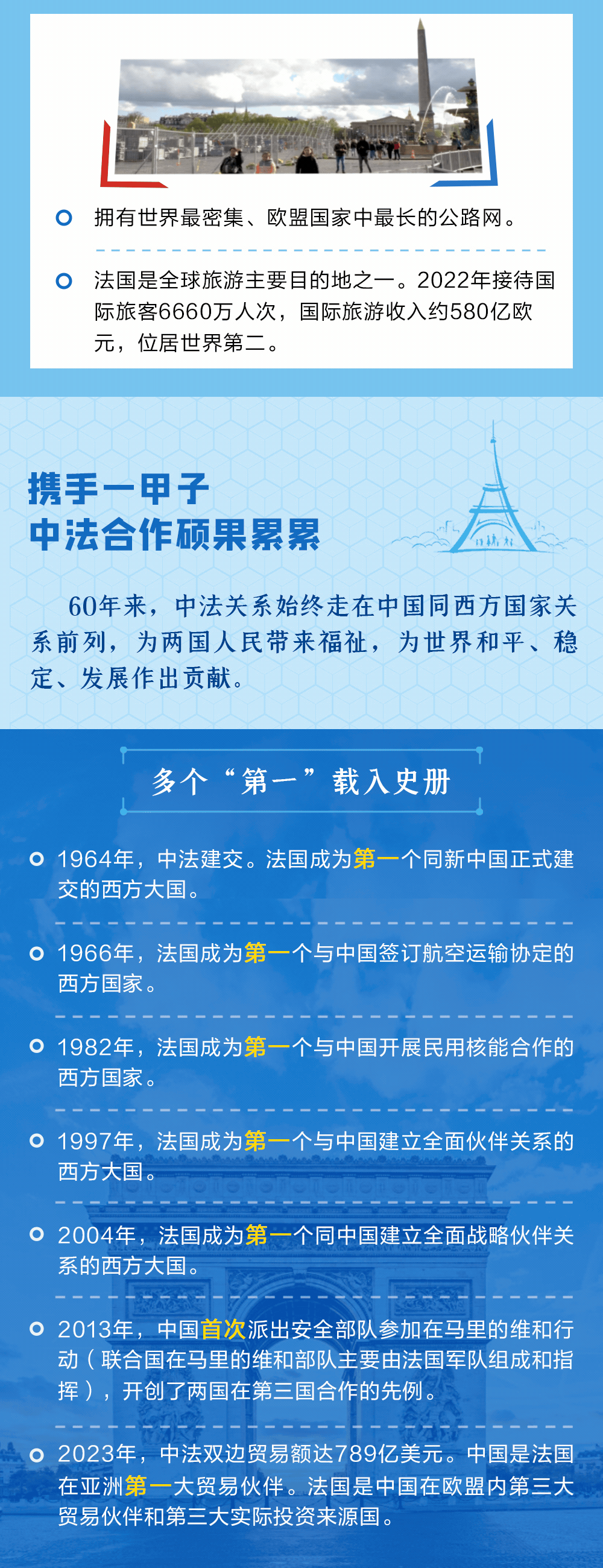 今年是中法建交60周年。60年來,秉承獨立自主、相互理解、高瞻遠(yuǎn)矚、互利共贏的“中法精神”,兩國關(guān)系走過了一段極不尋常的歷程。央視網(wǎng)《聯(lián)播+》特推出長圖,與您一同了解。