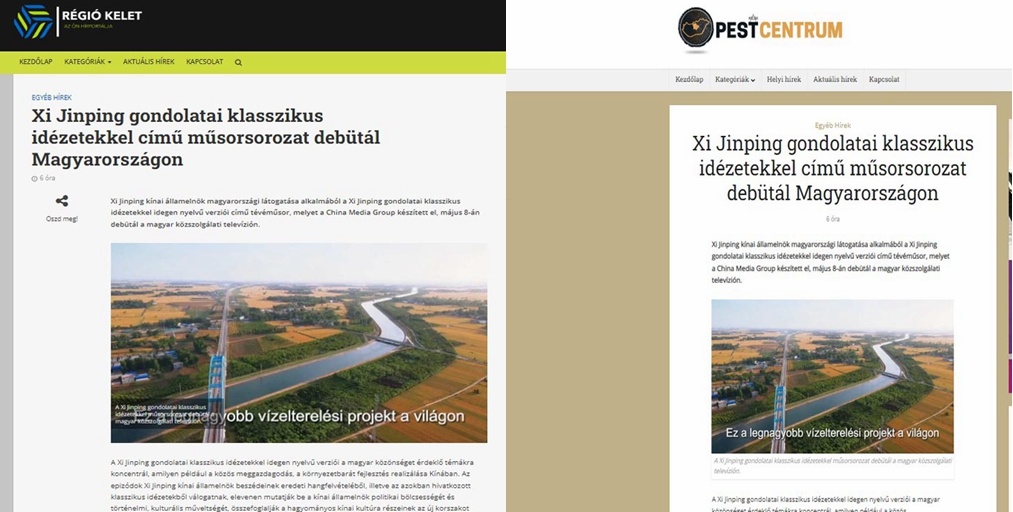 此外,當(dāng)?shù)貢r間5月4日,匈牙利東部生活網(wǎng)、匈牙利佩斯中心網(wǎng)、匈牙利西峰網(wǎng)、南佩斯在線網(wǎng)等對《平“語”近人——習(xí)近平喜歡的典故》(國際版)即將播出的消息進行了報道。匈牙利東部生活網(wǎng)主要以介紹亞洲以及中東歐地區(qū)內(nèi)容為主,在匈牙利擁有廣泛的受眾群體。匈牙利佩斯中心網(wǎng)是布達佩斯地區(qū)最主要的商業(yè)媒體網(wǎng)站。
