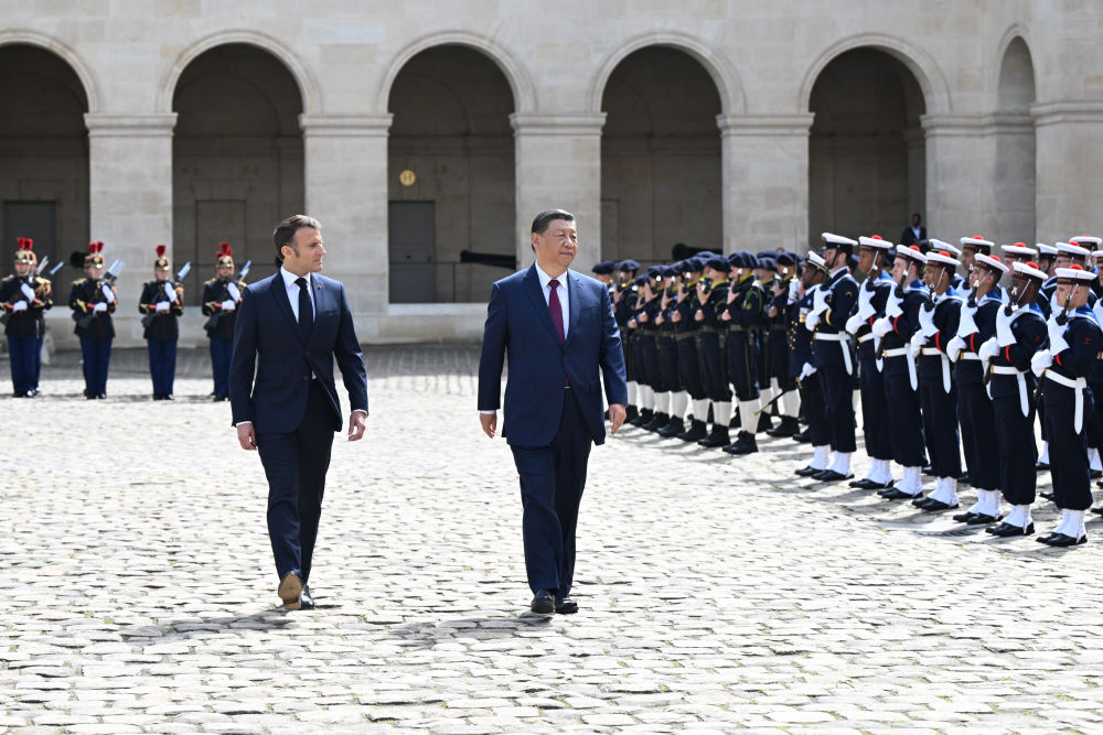 當(dāng)?shù)貢r(shí)間5月6日下午,正在法國進(jìn)行國事訪問的國家主席習(xí)近平在巴黎出席法國總統(tǒng)馬克龍舉行的隆重盛大歡迎儀式。新華社記者 謝環(huán)馳 攝
