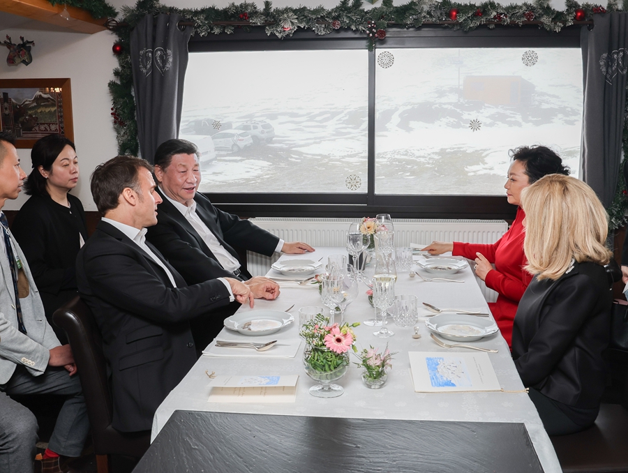 當(dāng)?shù)貢r(shí)間5月7日,應(yīng)法國(guó)總統(tǒng)馬克龍?zhí)貏e邀請(qǐng),國(guó)家主席習(xí)近平乘專(zhuān)機(jī)來(lái)到法國(guó)西南部上比利牛斯省訪問(wèn)。在圖爾馬萊山口“牧羊人驛站”,習(xí)近平和夫人彭麗媛同馬克龍和夫人布麗吉特憑窗而坐,在輕松愉快的氛圍中就一些重要問(wèn)題進(jìn)行戰(zhàn)略溝通。新華社記者 姚大偉 攝