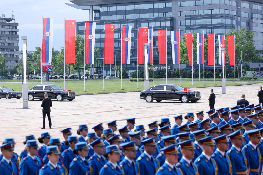 當(dāng)?shù)貢r(shí)間5月8日,國家主席習(xí)近平在貝爾格萊德出席塞爾維亞總統(tǒng)武契奇舉行的隆重盛大歡迎儀式。歡迎儀式在塞爾維亞大廈南廣場舉行。兩國元首共同登上檢閱臺(tái),軍樂團(tuán)奏響中塞兩國國歌,鳴10響禮炮。習(xí)近平在武契奇陪同下檢閱儀仗隊(duì)。