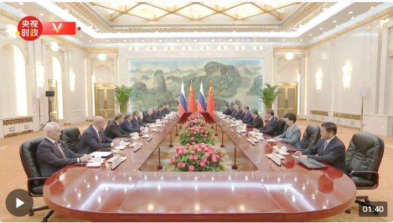 普京說:“尊敬的習(xí)近平主席,我親愛的老朋友,非常高興時(shí)隔半年再次來到友好、好客的中國并同您會(huì)面。俄中關(guān)系不是權(quán)宜之計(jì),不針對(duì)第三方,我們?cè)趪H事務(wù)中的合作,是當(dāng)今國際舞臺(tái)的主要穩(wěn)定因素之一?!?/p>