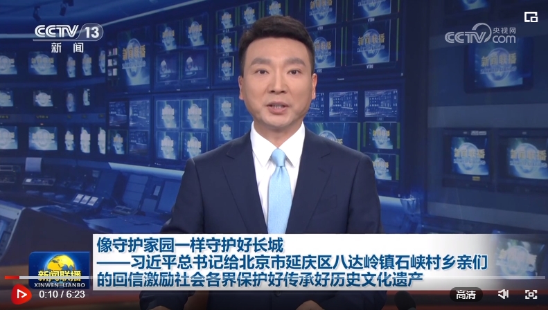 習(xí)近平總書記5月14日給北京市延慶區(qū)八達(dá)嶺鎮(zhèn)石峽村的鄉(xiāng)親們回信,強(qiáng)調(diào),長(zhǎng)城是中華民族的代表性符號(hào)和中華文明的重要象征,凝聚著中華民族自強(qiáng)不息的奮斗精神和眾志成城、堅(jiān)韌不屈的愛(ài)國(guó)情懷。勉勵(lì)鄉(xiāng)親們,帶動(dòng)更多人了解長(zhǎng)城、保護(hù)長(zhǎng)城,把祖先留下的這份珍貴財(cái)富世世代代傳下去。習(xí)近平總書記的回信在社會(huì)各界引發(fā)熱烈反響。