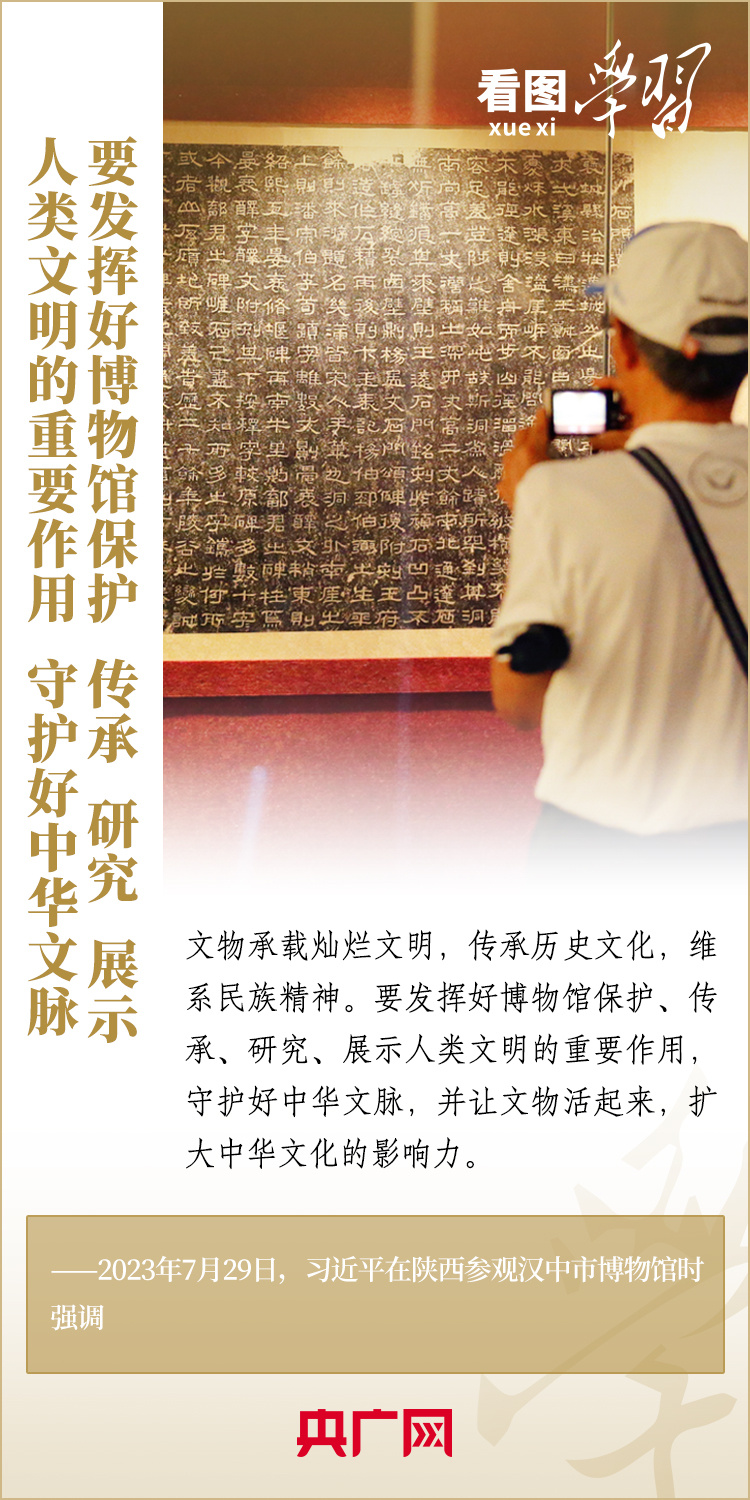 “一座博物館就是一所大學?!薄安┪镳^很重要,我從小就愛看博物館,小時候北京的博物館我差不多都看過了”“博物館建設(shè)要更完善、更成體系,同時發(fā)揮好博物館的教育功能”……在國內(nèi)考察中,習近平總書記曾經(jīng)多次走進當?shù)夭┪镳^,了解館藏文物的收藏、保護、研究情況,對博物館建設(shè)和利用作出重要指示。一起來學習!
