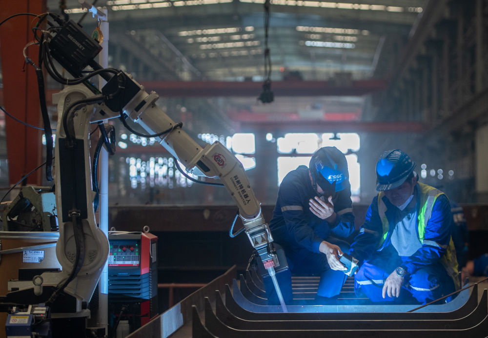 2024年5月16日,工作人員在湖北省武漢市新洲區(qū)武昌船舶重工集團有限公司查看焊接機器人焊接的焊縫。近年來,該公司圍繞新型公務船、高端海工船、中小型綠色智能油化船和支線集裝箱船等主建船型,積極推進數(shù)字化轉(zhuǎn)型與智能制造,助力航運高質(zhì)量發(fā)展。