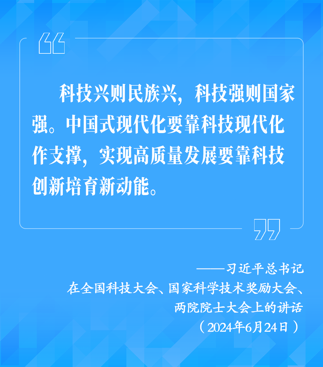 6月24日,全國(guó)科技大會(huì)、國(guó)家科學(xué)技術(shù)獎(jiǎng)勵(lì)大會(huì)、兩院院士大會(huì)在北京召開,習(xí)近平總書記為國(guó)家最高科學(xué)技術(shù)獎(jiǎng)獲得者等頒獎(jiǎng)并發(fā)表重要講話。總書記強(qiáng)調(diào),科技興則民族興,科技強(qiáng)則國(guó)家強(qiáng)。中國(guó)式現(xiàn)代化要靠科技現(xiàn)代化作支撐,實(shí)現(xiàn)高質(zhì)量發(fā)展要靠科技創(chuàng)新培育新動(dòng)能。