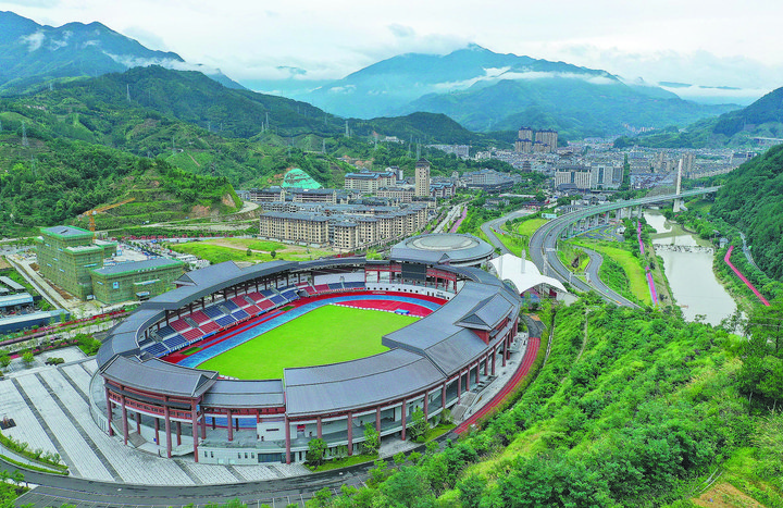 集籃球館、足球場、氣排球場、網(wǎng)球場等設(shè)施于一體的景寧體育公園。記者 林云龍 徐彥 葉錦霞 攝