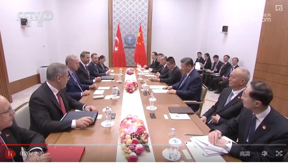 當(dāng)?shù)貢r(shí)間7月4日下午,國(guó)家主席習(xí)近平在阿斯塔納出席上海合作組織峰會(huì)期間會(huì)見土耳其總統(tǒng)埃爾多安。