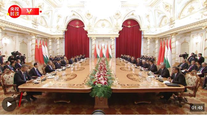 習(xí)近平指出,尊敬的拉赫蒙總統(tǒng)先生,我的老朋友,非常高興同你再次會晤。時隔5年再次到訪貴國,我看到了一個更加欣欣向榮的塔吉克斯坦。作為友好鄰邦和全面戰(zhàn)略伙伴,我們?yōu)榇烁械接芍愿吲d。