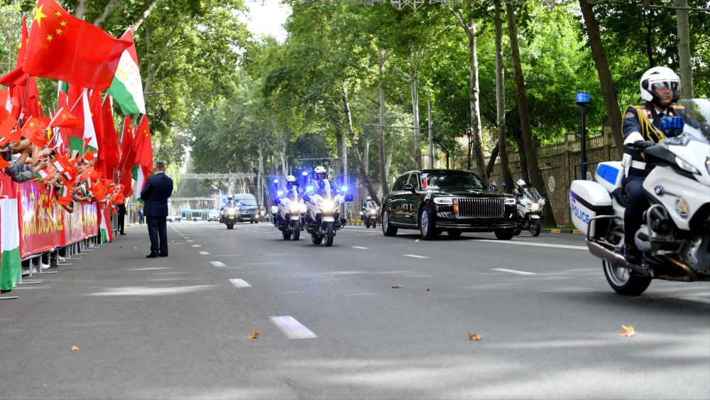赴機場途中,當(dāng)?shù)厝A僑華人和中資機構(gòu)代表在道路兩旁揮舞中塔兩國國旗,祝賀習(xí)近平主席對塔吉克斯坦國事訪問取得圓滿成功。