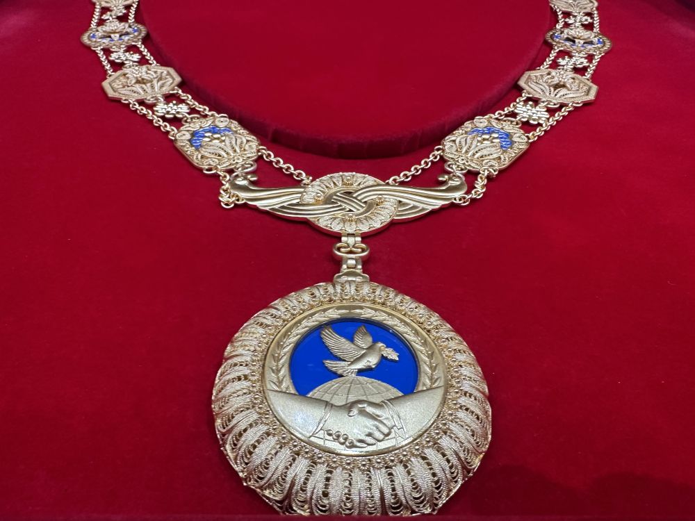 習近平主席在杜尚別總統(tǒng)府舉行隆重授勛儀式,向拉赫蒙總統(tǒng)頒授“友誼勛章”。這是中方首次在境外舉行勛章頒授儀式。