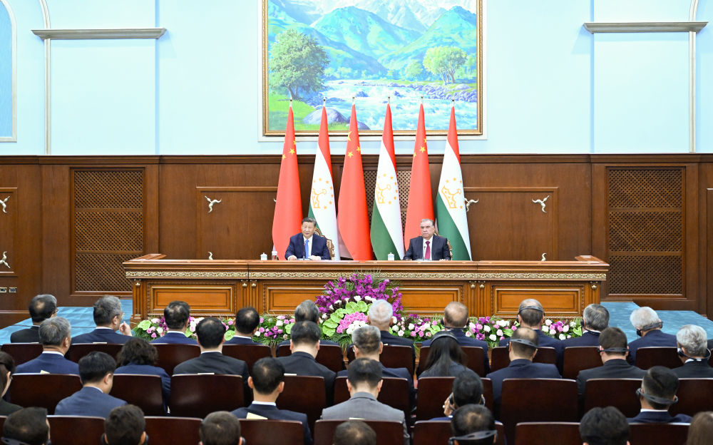 兩國元首共同簽署《中華人民共和國和塔吉克斯坦共和國關于發(fā)展新時代全面戰(zhàn)略合作伙伴關系的聯(lián)合聲明》,并共同見證交換經貿、投資、互聯(lián)互通、關鍵礦產、安全、人文等領域數(shù)十項雙邊合作文件。
