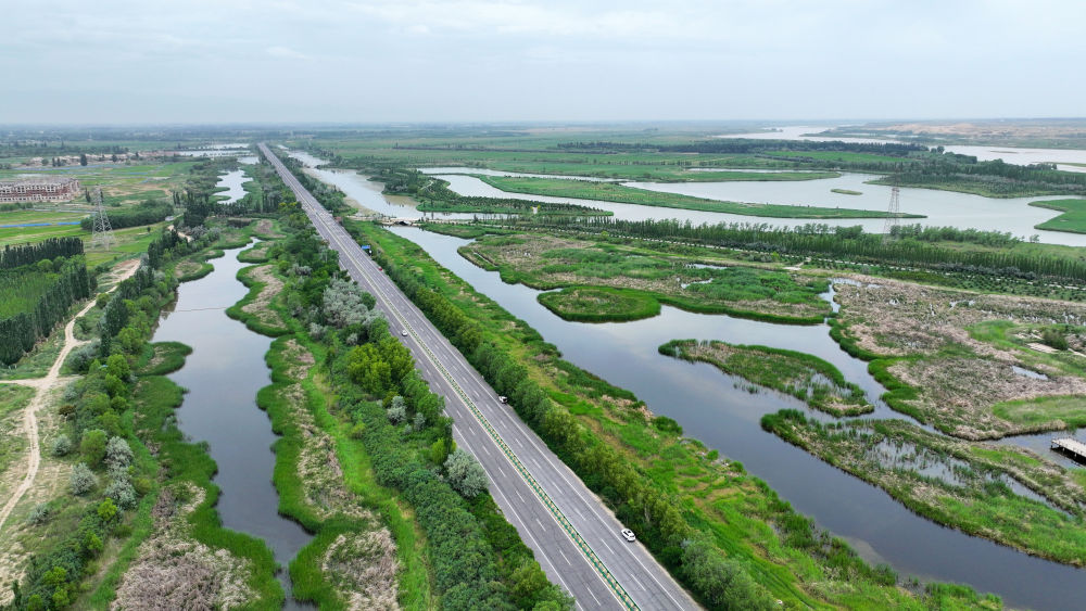 這是2024年6月13日拍攝的黃河寧夏段濱河大道(無人機照片)。近年來,寧夏努力建設(shè)黃河流域生態(tài)保護和高質(zhì)量發(fā)展先行區(qū),全力打好黃河保護持久戰(zhàn)。新華社記者 王鵬 攝
