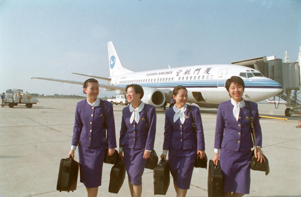 這是飛行歸來的廈航乘務員(1997年4月23日攝)。新華社記者 張國俊 攝
