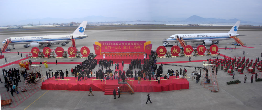 2006年,廈航作為新增廈門航點的唯一運營航空公司,執(zhí)行了廈門-臺北、廈門-高雄航線的包機任務。這是首航儀式現(xiàn)場。