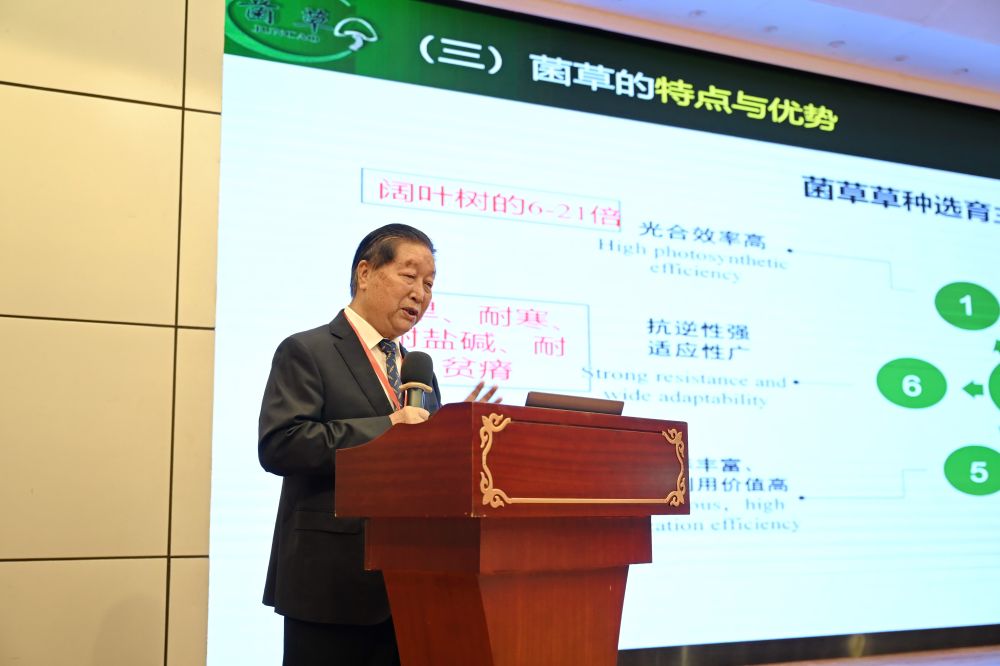6月16日,第十九屆國(guó)際菌草產(chǎn)業(yè)發(fā)展研討會(huì)在福建福州舉行,國(guó)家菌草工程技術(shù)研究中心首席科學(xué)家林占熺發(fā)表《菌草技術(shù)助力落實(shí)聯(lián)合國(guó)可持續(xù)發(fā)展目標(biāo)的潛力》主旨報(bào)告。新華社記者 林善傳 攝