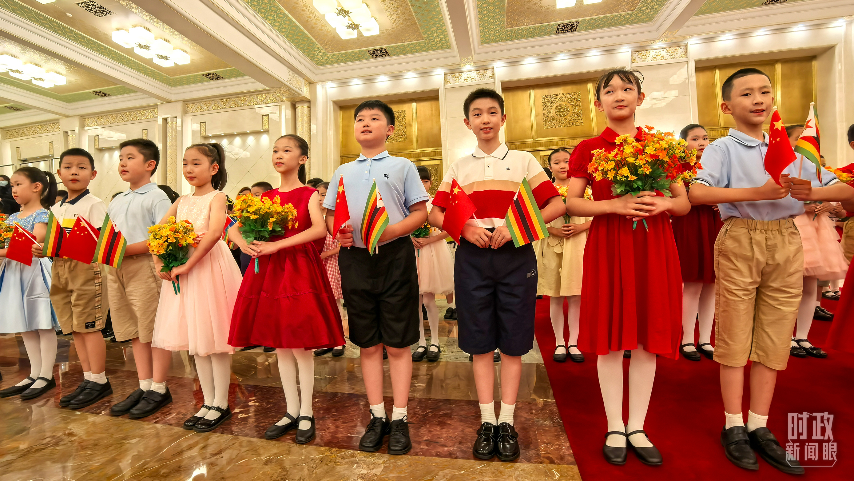 △現(xiàn)場(chǎng)歡迎津巴布韋總統(tǒng)訪華的青少年。(總臺(tái)央視記者鐘銳拍攝)
