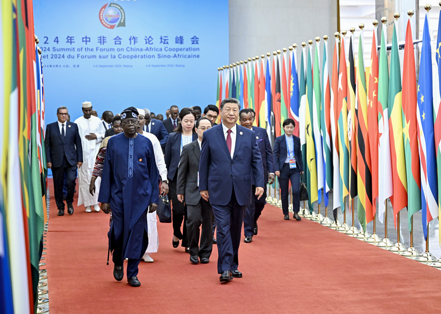 習(xí)近平指出,在這收獲的季節(jié),很高興同各位新老朋友相聚北京,共商新時(shí)代中非友好合作大計(jì)。中非友好穿越時(shí)空、跨越山海、薪火相傳。中非合作論壇成立24年來(lái)特別是新時(shí)代以來(lái),中國(guó)同非洲兄弟姐妹們本著真實(shí)親誠(chéng)理念,在世界百年變局中肩并肩、手拉手,堅(jiān)定捍衛(wèi)彼此正當(dāng)權(quán)益;在經(jīng)濟(jì)全球化大潮中強(qiáng)筋骨、壯體魄,累累碩果惠及中非億萬(wàn)百姓;在大災(zāi)大疫面前同甘苦、共拼搏,書(shū)寫(xiě)了一個(gè)個(gè)中非友好的感人故事;始終相互理解、彼此支持,樹(shù)立了新型國(guó)際關(guān)系的典范。經(jīng)過(guò)近70年辛勤耕耘,中非關(guān)系正處于歷史最好時(shí)期。面向未來(lái),中方提議將中國(guó)同所有非洲建交國(guó)的雙邊關(guān)系提升到戰(zhàn)略關(guān)系層面,將中非關(guān)系整體定位提升至新時(shí)代全天候中非命運(yùn)共同體。