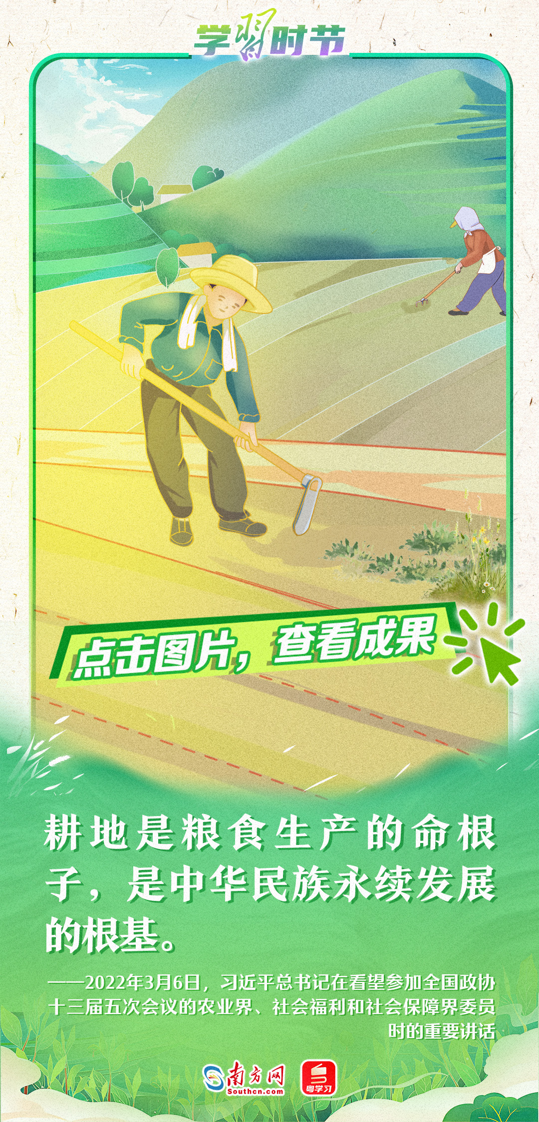 在第七個(gè)“中國(guó)農(nóng)民豐收節(jié)”到來(lái)之際,中共中央總書(shū)記、國(guó)家主席、中央軍委主席習(xí)近平代表黨中央,向全國(guó)廣大農(nóng)民和工作在“三農(nóng)”戰(zhàn)線上的同志們致以節(jié)日祝賀和誠(chéng)摯問(wèn)候。習(xí)近平總書(shū)記強(qiáng)調(diào),希望廣大農(nóng)民群眾和社會(huì)各界都積極行動(dòng)起來(lái),一步一個(gè)腳印,把鄉(xiāng)村全面振興的美好藍(lán)圖變?yōu)楝F(xiàn)實(shí),為實(shí)現(xiàn)農(nóng)業(yè)農(nóng)村現(xiàn)代化、建設(shè)農(nóng)業(yè)強(qiáng)國(guó)奠定基礎(chǔ)。