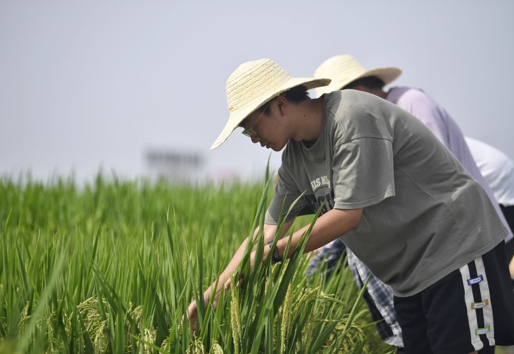 觀察水稻生長情況。