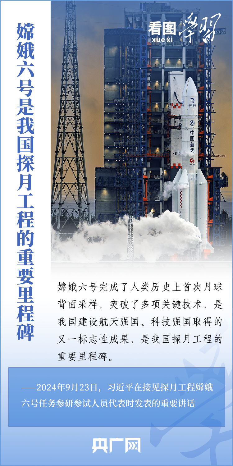 中國(guó)探月工程成果凝結(jié)著我國(guó)幾代航天人的智慧和心血。9月23日,習(xí)近平總書記接見探月工程嫦娥六號(hào)任務(wù)參研參試人員代表并發(fā)表重要講話??倳浉叨瓤隙ㄦ隙鹆?hào)任務(wù)成功的重要意義,以及探月工程為我國(guó)航天事業(yè)發(fā)展、為人類探索宇宙空間作出的重大貢獻(xiàn),勉勵(lì)航天戰(zhàn)線工作者再接再厲、乘勢(shì)而上,為建設(shè)航天強(qiáng)國(guó)再立新功。一起來(lái)學(xué)習(xí)!