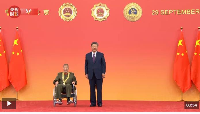 中華人民共和國國家勛章和國家榮譽(yù)稱號頒授儀式于9月29日上午10時在人民大會堂隆重舉行。中共中央總書記、國家主席、中央軍委主席習(xí)近平向“共和國勛章”獲得者黃宗德頒授勛章。