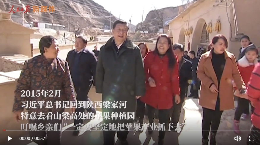 2015年2月,總書記回到陜西梁家河,特意去看山梁高處的蘋果種植園,叮囑鄉(xiāng)親們,“一定要堅定地把蘋果產(chǎn)業(yè)抓下去?!贝藭r,聲勢浩大的脫貧攻堅正如火如荼。