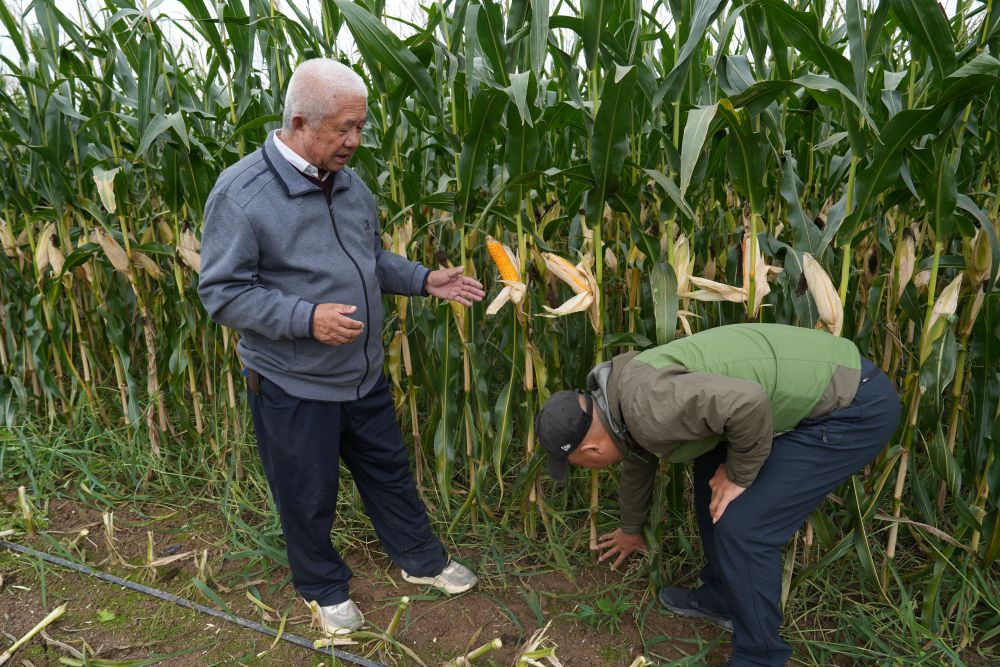 9月底,寧夏吳忠市利通區(qū)金積鎮(zhèn)梨花橋村,一片片籽實飽滿的青貯玉米挺立田間,大型收割機穿梭其中。66歲的農(nóng)業(yè)技術(shù)專家楊生明剝開玉米棒苞葉,檢查籽粒成熟情況,收完玉米,馬上就要搶種冬小麥,他負責(zé)技術(shù)指導(dǎo)。