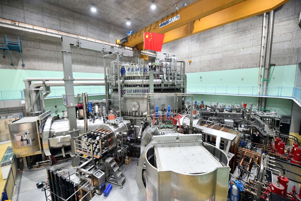這是在安徽合肥科學(xué)島拍攝的“人造太陽(yáng)”——全超導(dǎo)托卡馬克核聚變實(shí)驗(yàn)裝置(EAST)(2021年4月13日攝)。