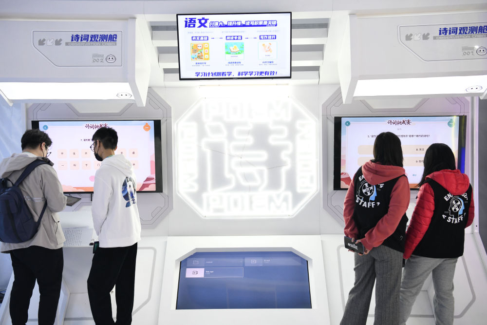 2022年11月17日,觀眾在于安徽合肥舉辦的第五屆世界聲博會(huì)上體驗(yàn)教育領(lǐng)域智能產(chǎn)品。