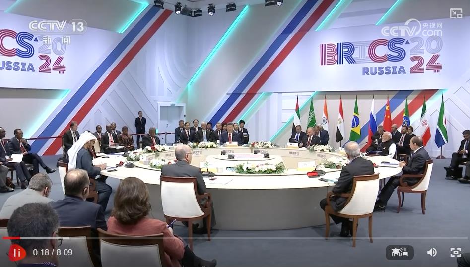 當地時間10月23日上午,金磚國家領導人第十六次會晤在喀山會展中心舉行。俄羅斯總統(tǒng)普京主持會晤。中國國家主席習近平、巴西總統(tǒng)盧拉(線上)、埃及總統(tǒng)塞西、埃塞俄比亞總理阿比、印度總理莫迪、伊朗總統(tǒng)佩澤希齊揚、南非總統(tǒng)拉馬福薩、阿聯(lián)酋總統(tǒng)穆罕默德等出席。