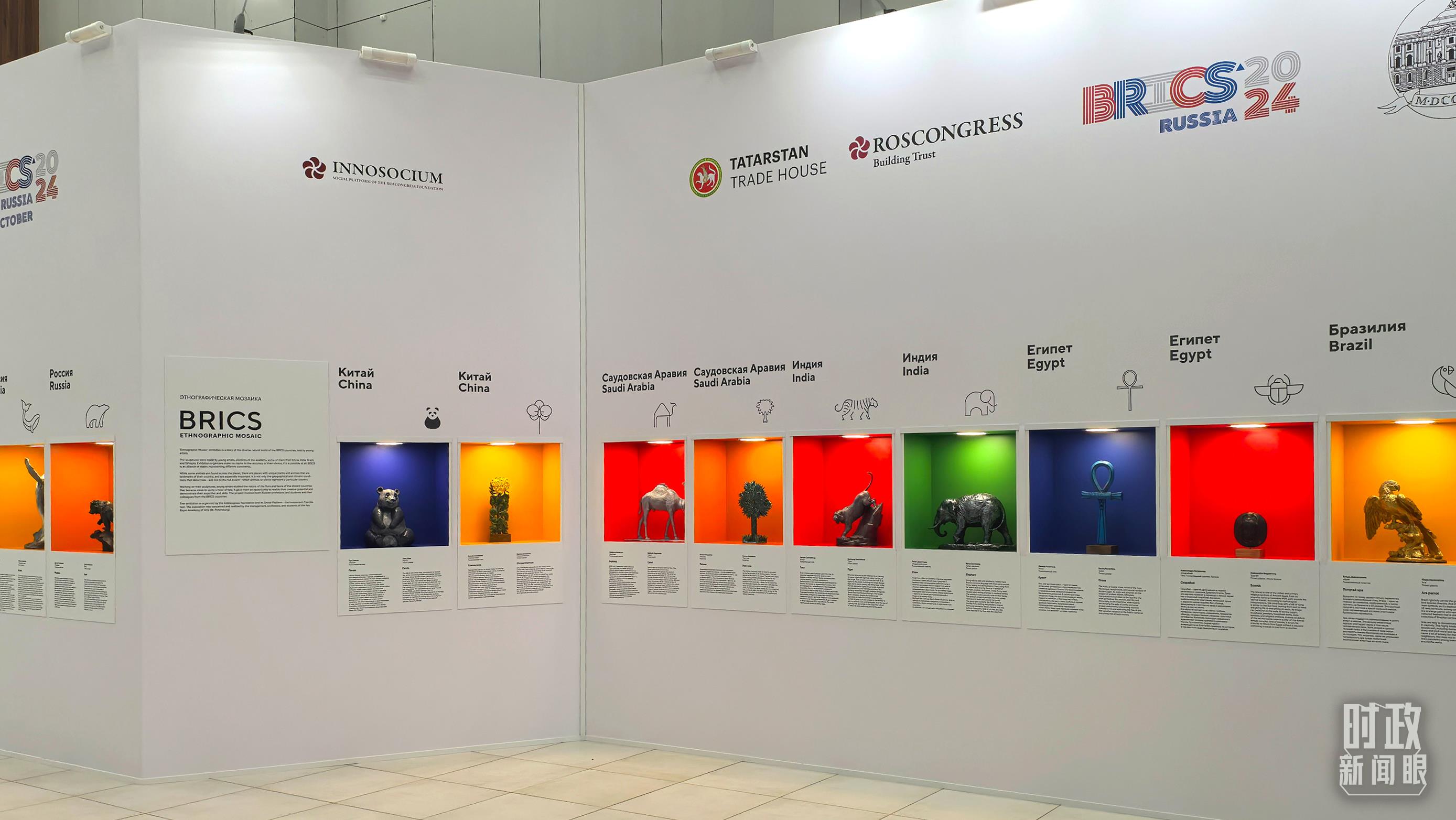 喀山會(huì)展中心內(nèi)展示的金磚國(guó)家工藝品。(總臺(tái)央廣記者潘毅拍攝)